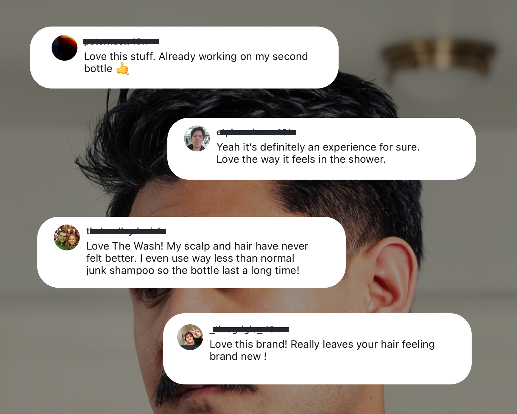 The Wash is made with naturally derived and sustainably sourced ingredients that are science-backed to improve hair and scalp health. From growth-encouraging caffeine and rosemary to hydrating meadowfoam and quinoa, every element is chosen for benefit. No fluff.